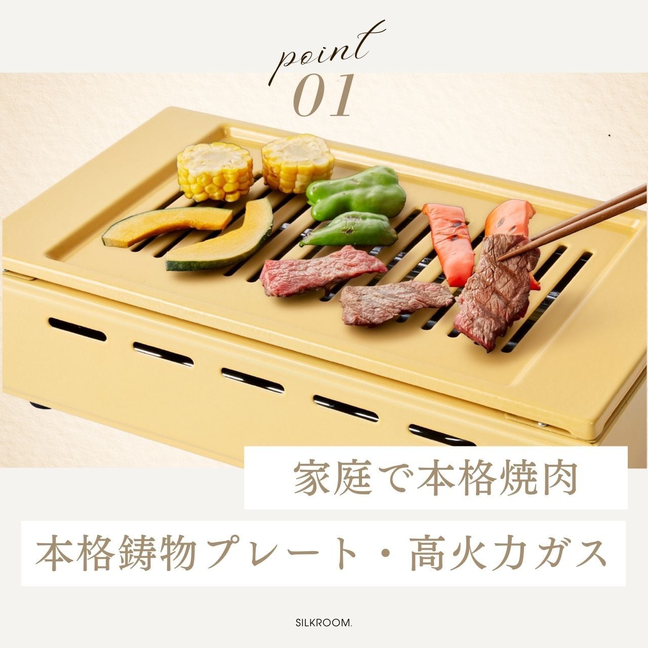 ガスの強化力と重厚プレートでお店と変わらない本格的な焼肉を家庭でもお楽しみください。
